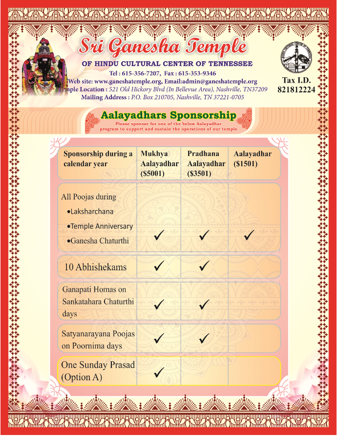 Temple – Aalayadhar Sponsorship