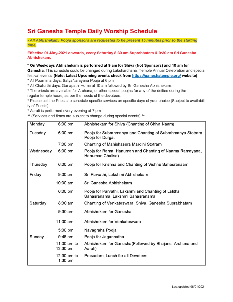 Daily Pooja Schedule